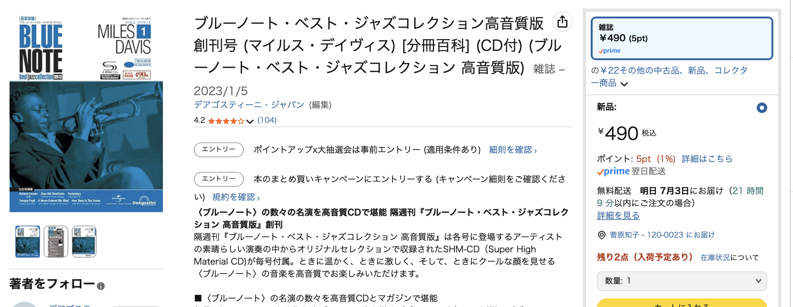ブルーノート・ベスト・ジャズコレクション高音質版 創刊号 (マイルス・デイヴィス) [分冊百科] (CD付) (ブルーノート・ベスト・ジャズコレクション 高音質版) 雑誌